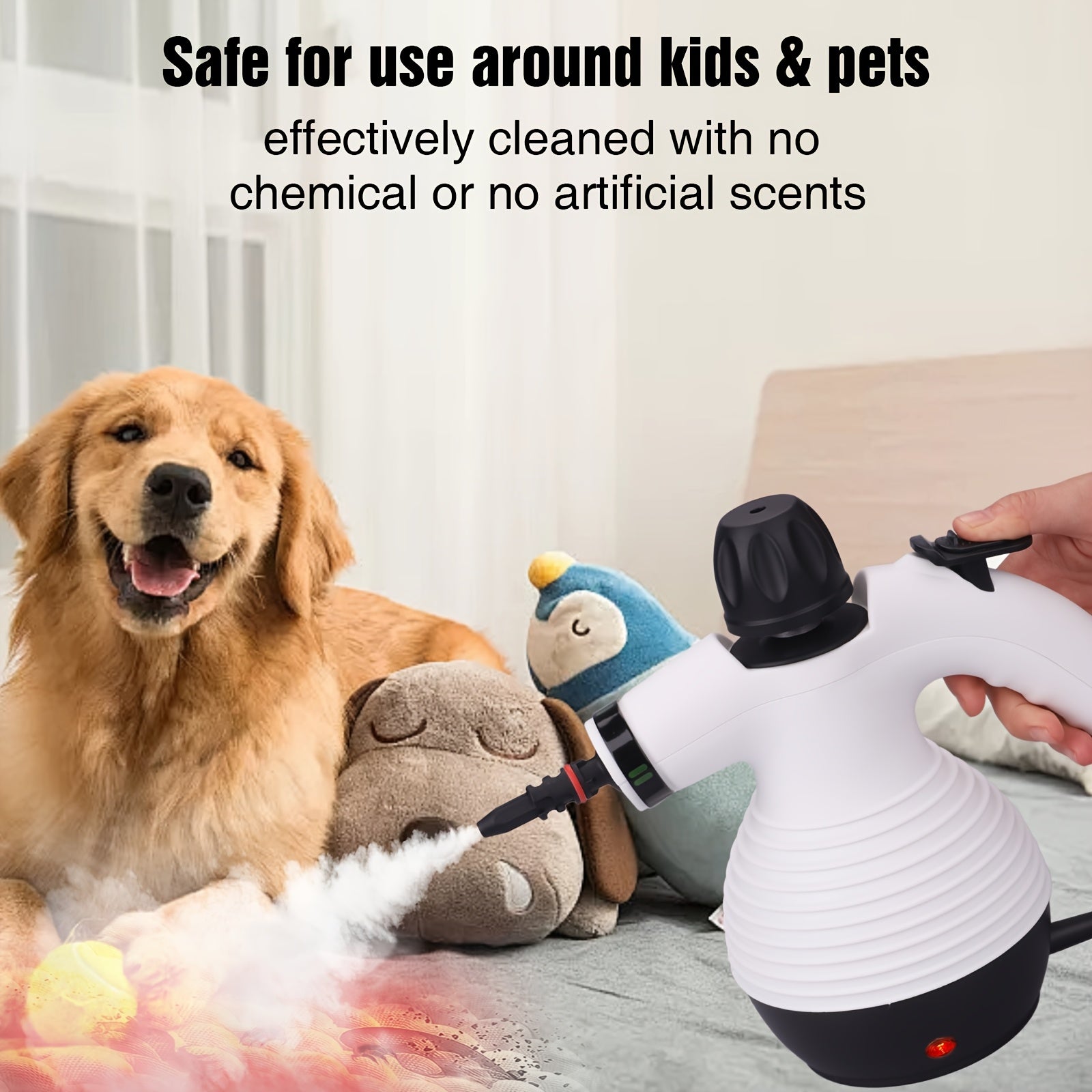 Uses only water — safe for children, pets, and allergy sufferers while being gentle on the environment.