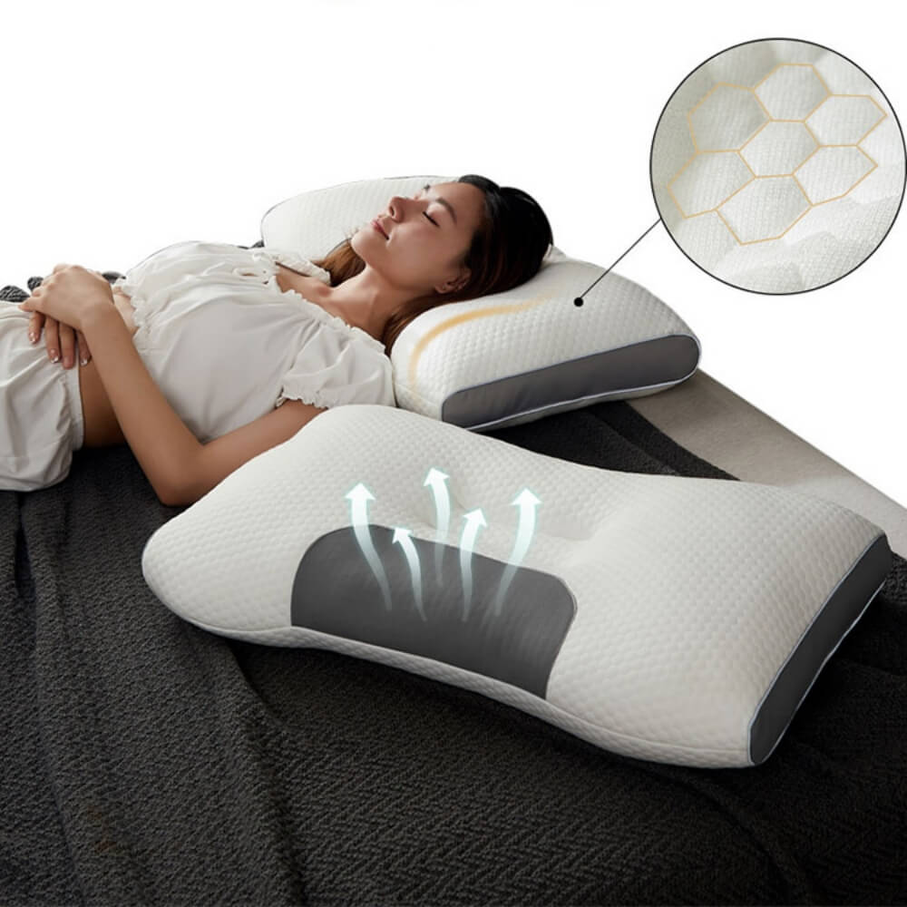 Improve your sleep and well-being with our hybrid neck support pillow, providing relief from neck pain and discomfort, allowing you to wake up refreshed and energized for the day.