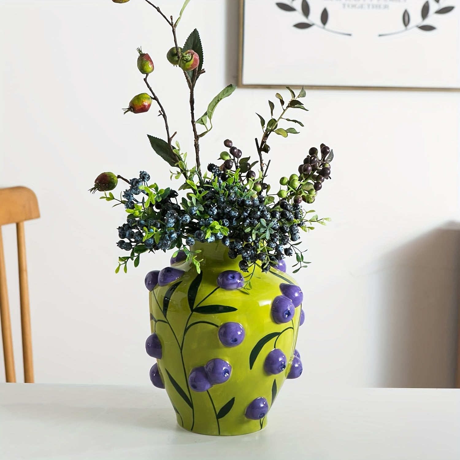 Each vase is carefully handcrafted, making every piece one of a kind. The intricate lemon and berry patterns create a playful yet elegant tropical aesthetic, adding an exotic and artistic flair to your home. Due to the porous nature of the material, it’s recommended to use caution when adding water or fresh flowers. Despite this, the vase remains a durable and striking décor element that will bring joy for years to come.